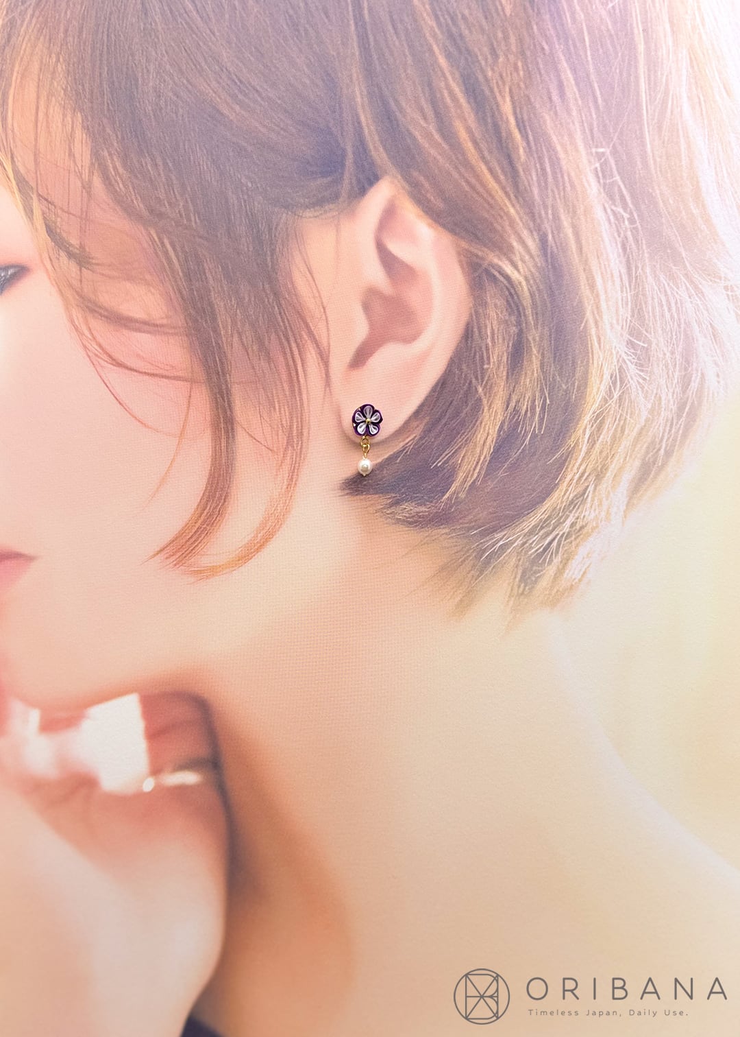 小ぶりながらも可憐な花びらが、控えめに耳元を彩ります。