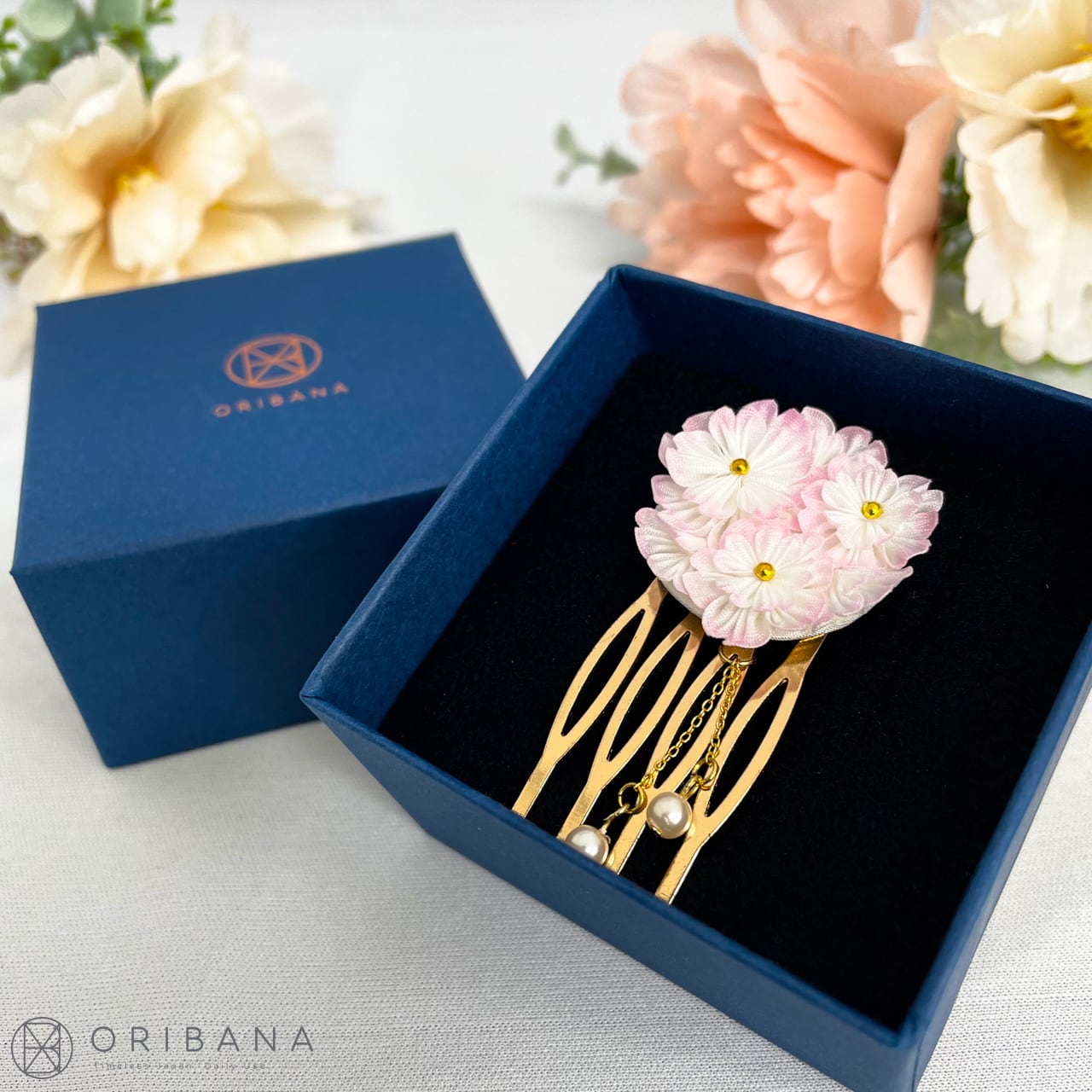 小ぶりながらも華やかで、髪にそっと差し込むだけで可憐な印象を添えます。